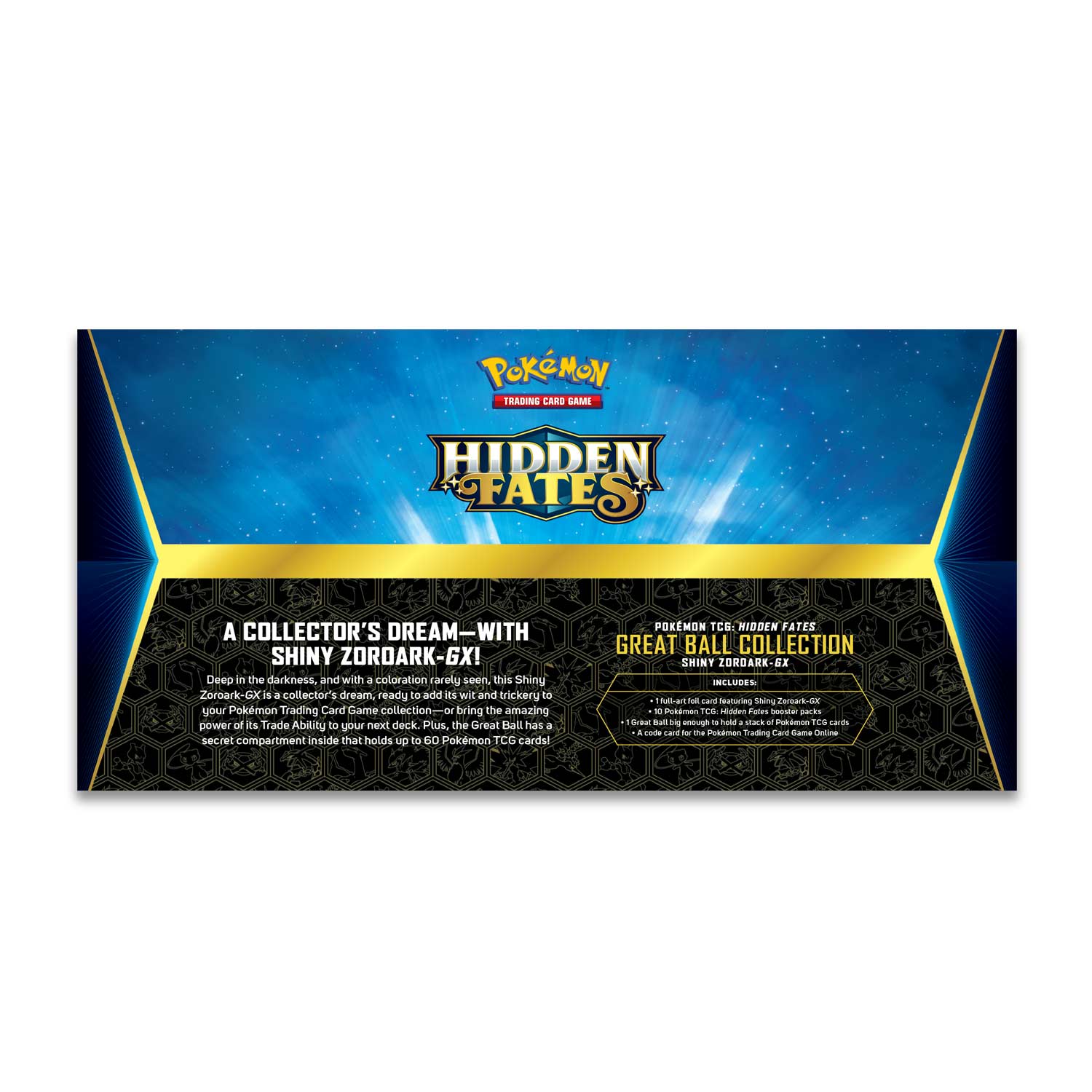 Pokémon TCG: Hidden Fates Great Ball Collection Shiny Zoroark-GX includes: