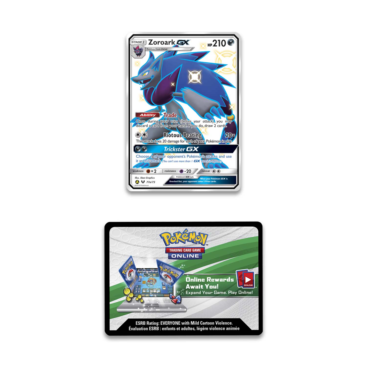 • 1 Full-art foil card featuring Shiny Zoroark-GX