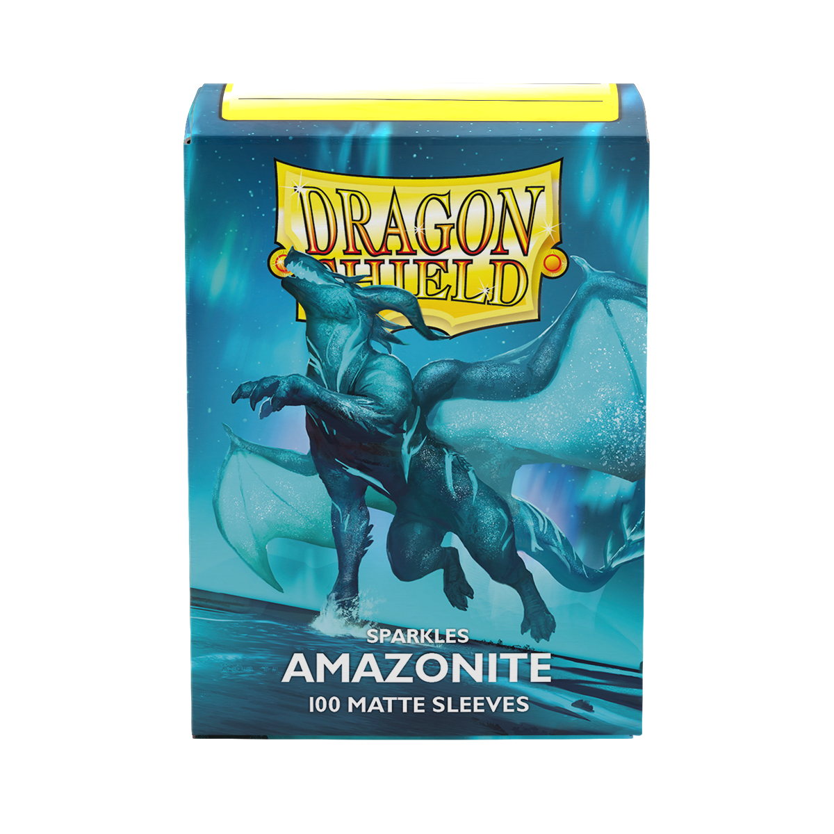 Let your deck sparkle like an aurora in the night sky with Matte Amazonite sleeves. This new color gives players even more options for their dazzling decks in the ever-popular sparkly sleeve line.